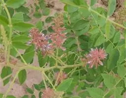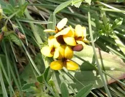 总状花序腋生,具长梗;花2-6朵聚生于花序的顶端,花梗间常有肉质密腺;花萼浅绿色,钟状,长6-10毫米,裂齿披针形;花冠黄白色而略带青紫,长约2厘米,各瓣均具瓣柄,旗瓣扁圆形,宽约2厘米,顶端微凹,基部稍有耳,翼瓣略呈三角形,龙骨瓣稍弯;子房线形,被毛。