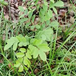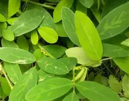 一年生缠绕、草质藤本或近直立草本,有时顶端缠绕状。茎近无毛。羽状复叶具3小叶;托叶披针形,长约1厘米,着生处下延成一短距,有线纹;小叶卵状菱形,长5-15厘米,宽4-6厘米,先端急尖,边全缘或近全缘,有时淡紫色,无毛。