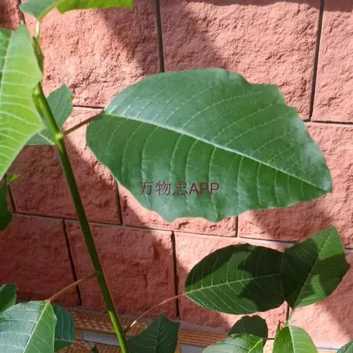 落叶大乔木,高达30米;树干通直,基部略有板状根;树皮薄,灰褐色,老时有裂隙且粗糙;枝平展,幼枝略扁,褐色,老枝圆柱形,灰色。叶对生,薄革质,椭圆形或长圆状椭圆形,长15-25厘米,宽7-12厘米,顶端短尖,基部圆形或截形,萌蘖枝的幼叶长50-60厘米,宽15-30厘米,基部浅心形,上面有光泽,下面无毛或被稠密短柔毛;叶柄长2-3厘米,粗壮;托叶披针形,长约12毫米,跨摺,脱落。