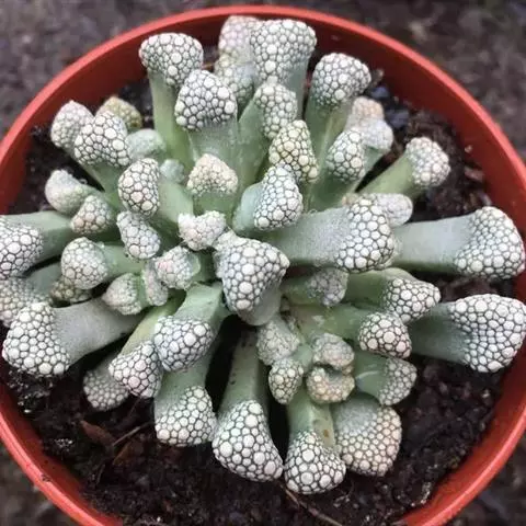 本种小巧玲珑,叶的大小和排列都酷似番杏科著名种类天女,但比天女栽培容易。是一种易于普及的番杏科多肉植物,家庭栽培非常适宜。