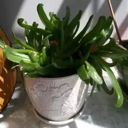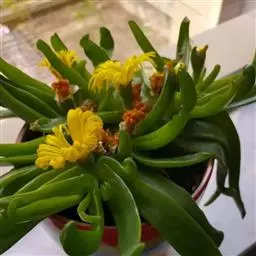 一盆形似中国大陆版图的唐扇绽放出三朵金黄色的小花,娇艳的花朵与肥厚质朴的叶子相映成趣,奇特而美丽,见者无不称奇。那么怎才能养好唐扇呢,唐扇为番杏科菱蛟属多年生肉质草本植物,原产南非,是多肉植物中的冬型种,具有’‘冷凉季节生长,夏季高温休眠”的习性。秋、冬、春三季是其生长期,可放在阳光充足处养护,如果光照不足会造成叶子瘦长,株型松散,不紧凑,并对以后的开花造成影响;浇水掌握”不干不浇,浇则浇透”,每月施一次腐熟的稀薄液肥或复合肥。冬季放在室内光照充足的南窗台或南阳台,在保持土壤干燥的条件下,使植株休眠,可耐5℃的低温,甚至短期的O℃以上低温。如果白天能保持在20℃左右,晚上不低于10℃,则可正常浇水,使其继续生长。唐扇在夏季高温时生长停滞,处于休眠状态,要控制浇水,也不要雨淋,更不能施肥,并注意通风良好,避免闷热潮湿的环境,这些措施都是为了防止植株腐烂。等秋凉后植株恢复生长时再恢复正常管理。生长旺盛的唐扇可在每年秋季换盆一次,并结合换盆进行分株繁殖,方法是将丛生的植株分开,晾3天左右,等伤口干燥后分别栽种即可,有根无根都能成活。新上盆的植株形似祖国大陆版图的唐扇不要浇太多的水。