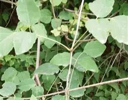 药材性状:茎藤圆柱形而扭曲,长30-60厘米,直径0.5-1厘米。表面灰棕色,粗糙,有浅纵沟纹及裂纹,皮孔圆形或横向长圆形,突起,并有枝痕。质坚脆,较易折断,断面不整齐,皮部薄,黄棕色,易剥离,木部黄白色,有放射状纹理,中央髓圆形。气微,味苦、涩。