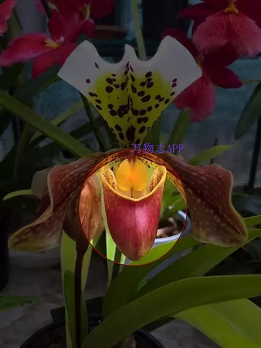 兜兰花比较雅致,色彩比较庄重,色及带有不规则斑点或条纹。花瓣较厚,花朵开放期比较长。属观赏类花草。