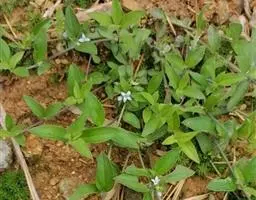 白花蛇舌草(学名:Hedyotis diffusa)为一年生披散草本,高15-50cm。根细长,分枝,白花。茎略带方形或扁圆柱形,光滑无毛,从基部发出多分枝。花期春季。种子棕黄色,细小,且3个棱角。