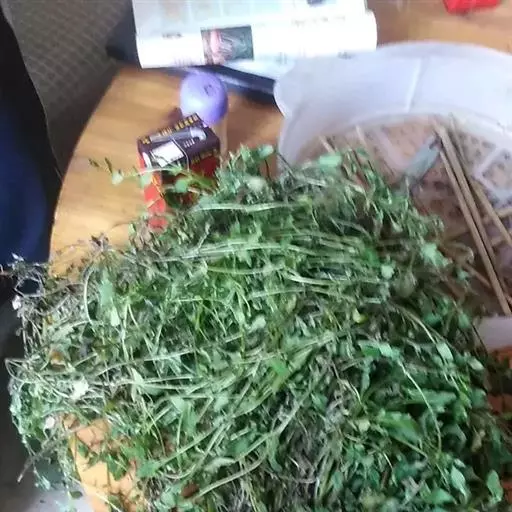 灰黄色。叶表皮细胞多角形,垂周壁平直;气孔千轴式,长圆形。茎表皮细胞长条形,有气孔。导管主为环纹或螺纹,直径15-30μm。草酸钙簇晶存在于叶肉组织中,直径1y-15μm。草酸钙针晶多见,成束或散在,长75-135μm。淀粉粒众多,单粒类圆形,复粒由2-3分粒组成。