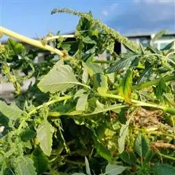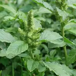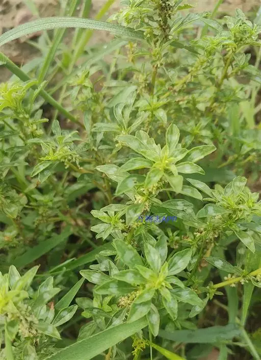 反枝苋是苋科苋属的一年生草本植物。株高达1米;茎密被柔毛;叶菱状卵形或椭圆状卵形,先端锐尖或尖凹,…