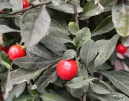 珊瑚豆,是茄科茄属的常绿灌木。叶双生,大小不等,椭圆状披针形,先端钝至短尖,叶面无毛,叶背有簇茸毛,…