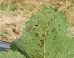 主要危害叶片及叶柄。叶片染病,初生灰白色或褪绿水渍状斑点,后扩大为圆形或近圆形灰褐色斑,发病后期,病斑灰白色,半透明,易穿孔;叶柄染病,形成长圆形或纺锤形至梭形凹陷,灰褐色,湿度大时病斑上常有赭红色粘质物。该病属高温高温型真菌病害,7—9月为发生适期,高温天气下阵雨易发病。
