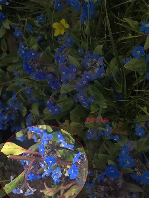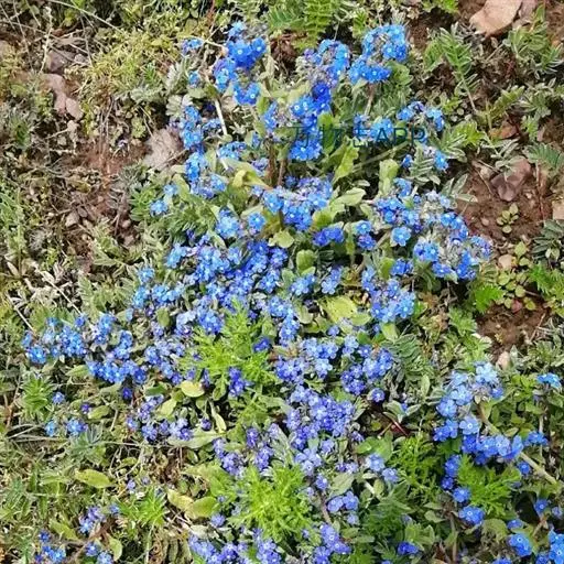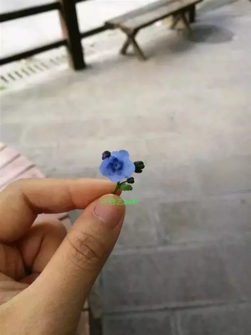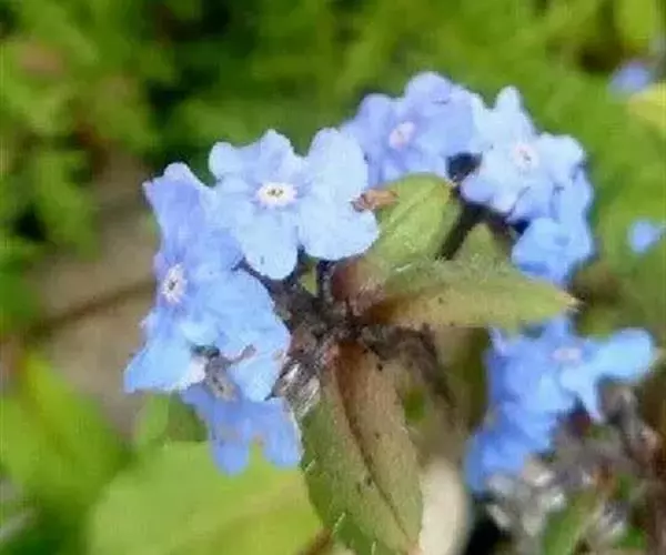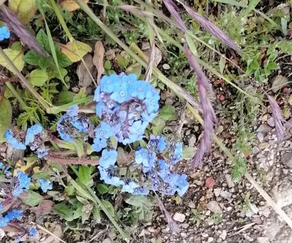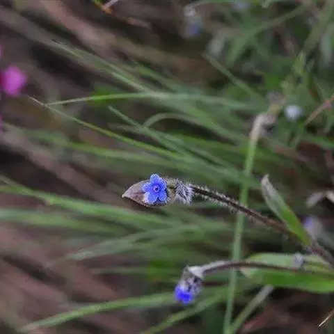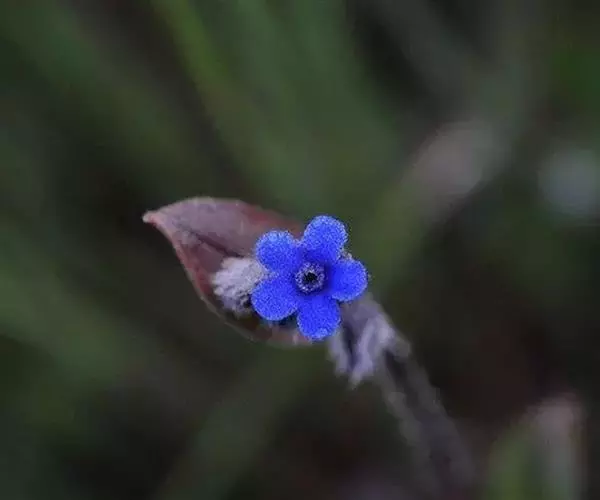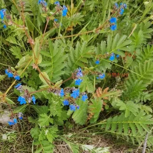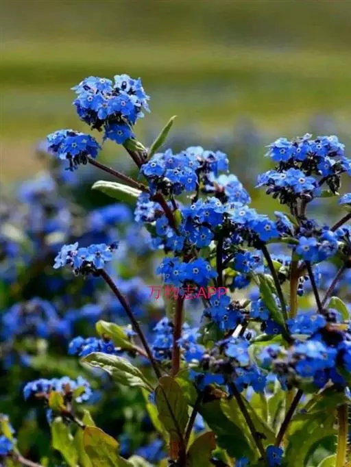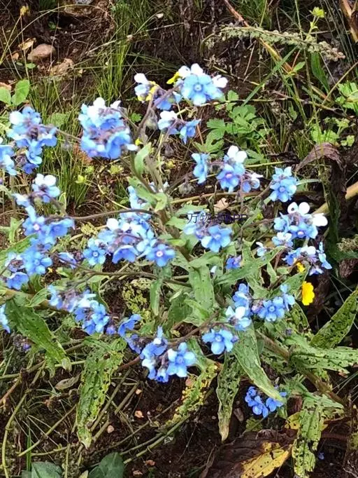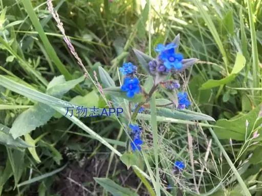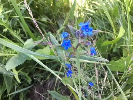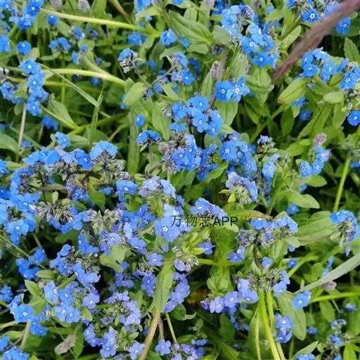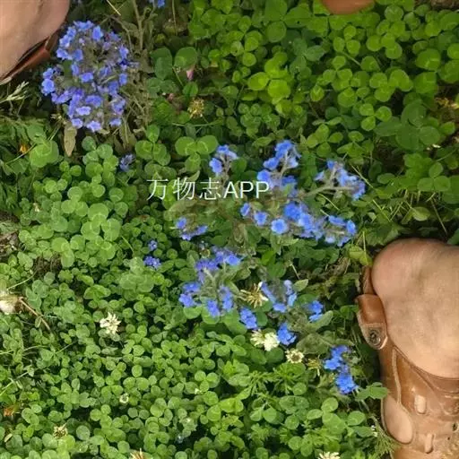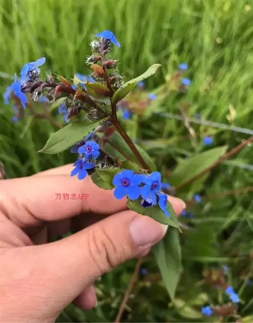 花序密集,直径0.5-1.5厘米,有时稍伸长,长约达2厘米,生茎顶端及无叶的分枝顶端,基部苞片叶状,其他苞片小,长0.5-2毫米;花梗短,密被短糙伏毛;花萼长约2毫米,果期长达3.5毫米,5裂近基部,裂片线形或狭三角形,外面疏被短柔毛和长糙毛,边缘密被短柔毛,内面有短伏毛;花冠蓝色或蓝紫色,檐部直径5-9(-11)毫米,无毛,裂片近圆形,筒部长2.5-3.8(-4)毫米,无毛,附属物低梯形或半月形,长约0.3毫米,无毛或有短毛。