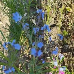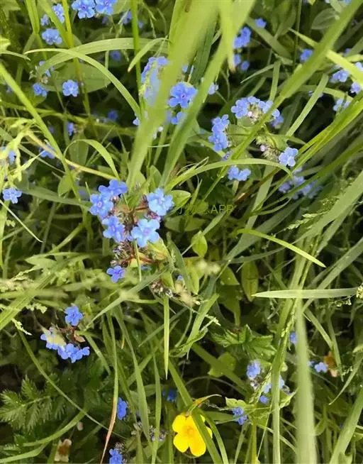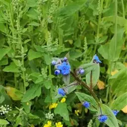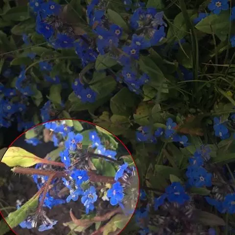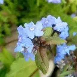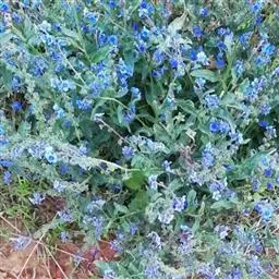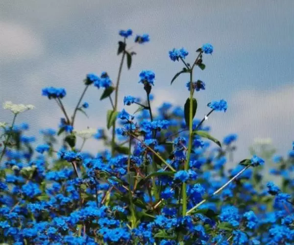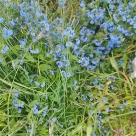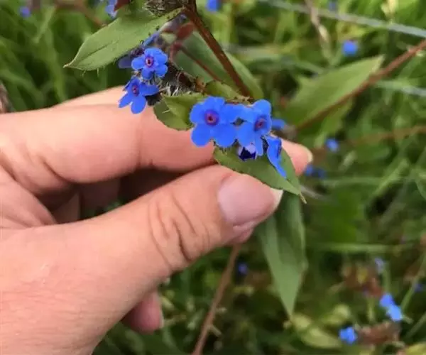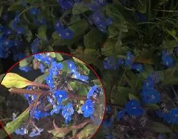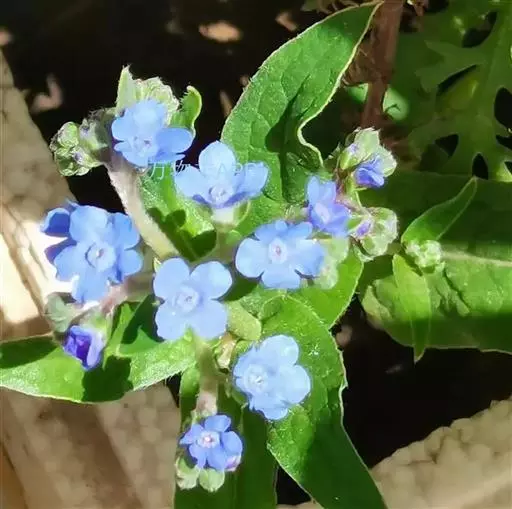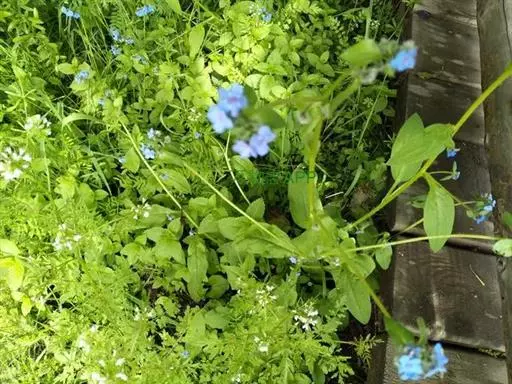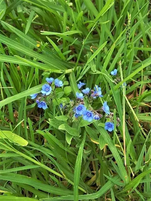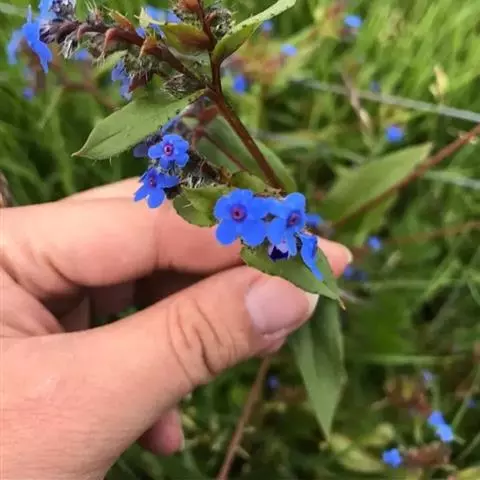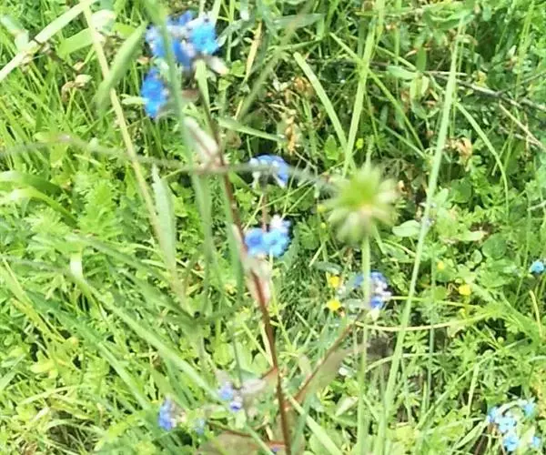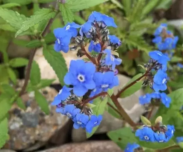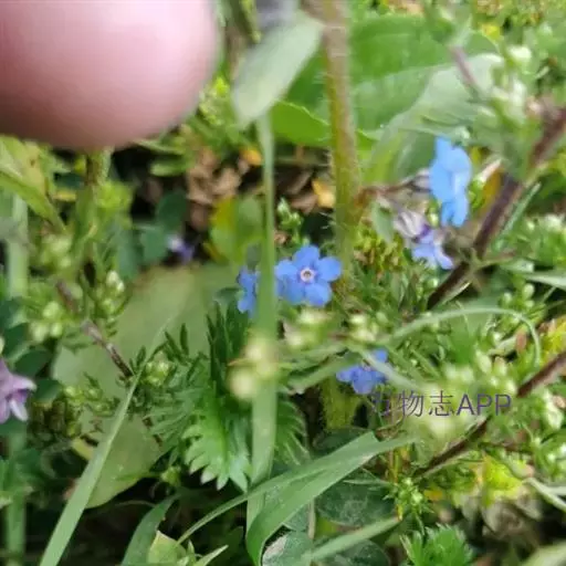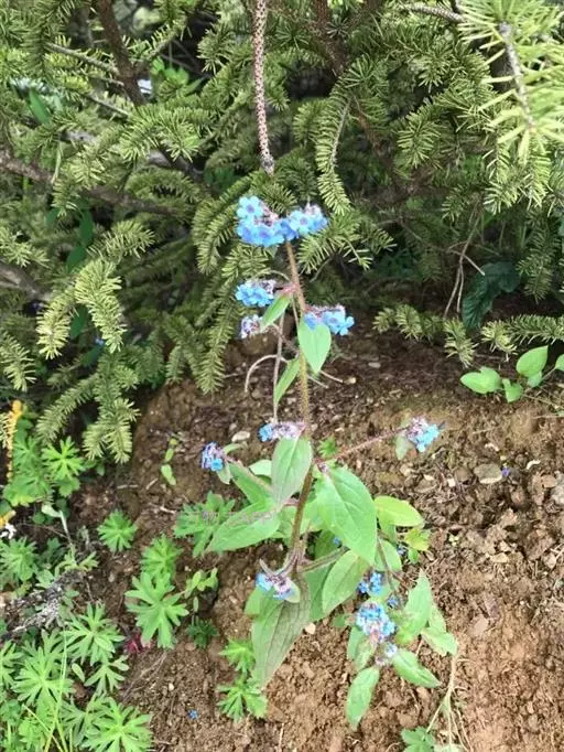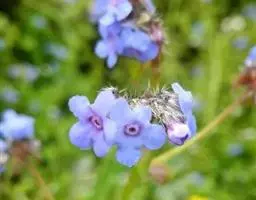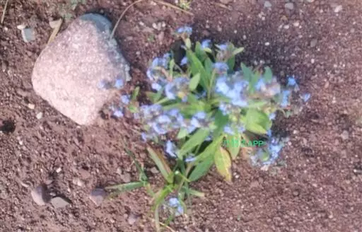 花序密集,直径0.5-1.5厘米,有时稍伸长,长约达2厘米,生茎顶端及无叶的分枝顶端,基部苞片叶状,其他苞片小,长0.5-2毫米;花梗短,密被短糙伏毛;花萼长约2毫米,果期长达3.5毫米,5裂近基部,裂片线形或狭三角形,外面疏被短柔毛和长糙毛,边缘密被短柔毛,内面有短伏毛;花冠蓝色或蓝紫色,檐部直径5-9(-11)毫米,无毛,裂片近圆形,筒部长2.5-3.8(-4)毫米,无毛,附属物低梯形或半月形,长约0.3毫米,无毛或有短毛。
