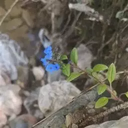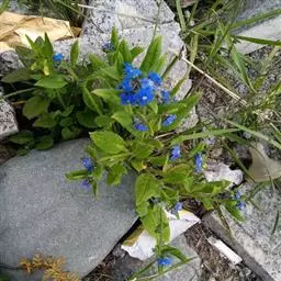 基生叶和茎下部叶具长柄,卵形、狭卵形至宽披针形,长4-12厘米,宽0.7-4.4厘米,顶端急尖、渐尖,稀钝,基部圆形或宽楔形,中部以上叶渐变小,具短柄至无柄,狭卵形或宽披针形,基部渐狭,边缘 微孔草 全缘,两面有短伏毛,下面沿中脉有刚毛,上面还散生带基盘的刚毛。