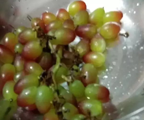 提子 穗形呈倒梯形,去除副穗,果粒较拥挤时,疏去部分果粒。
