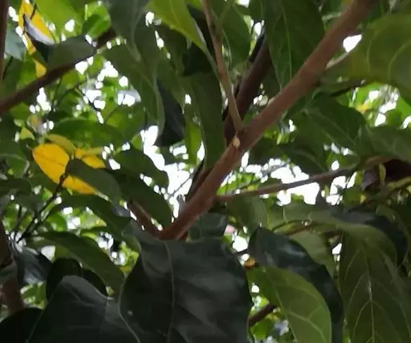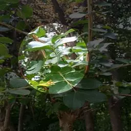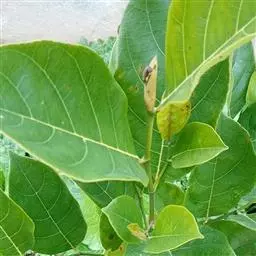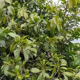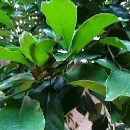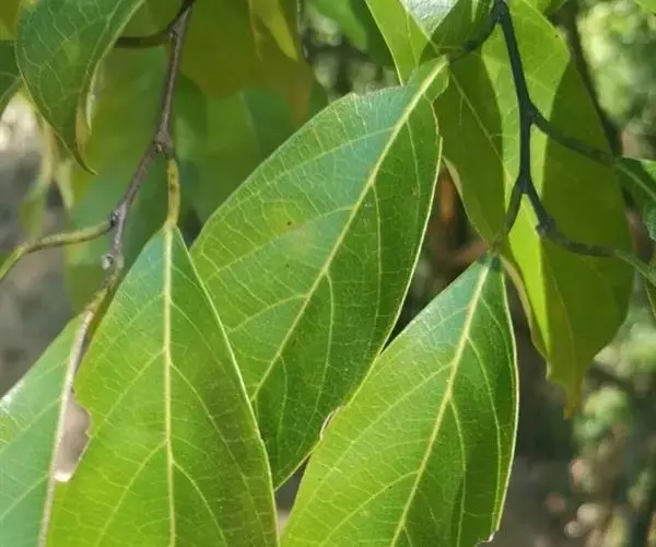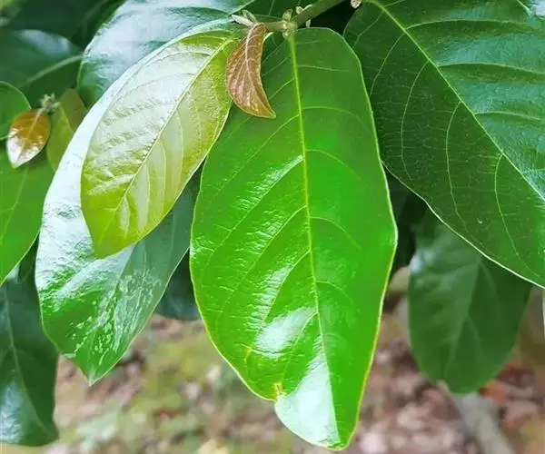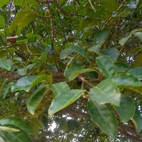 乔木,高可达17米,主干通直;树皮黑褐色,纵裂,叶互生,革质,长圆状椭圆形至倒卵椭圆形,长7-15厘米,宽3-7厘米,先端短尖或具短尾,基部楔形或近圆形,全缘或具不规则浅疏锯齿,表面深绿色,背面淡绿色,两面均无毛,侧脉6-10对,在表面微隆起,背面明显隆起,嫩叶干时黑色;叶柄长5-15毫米;托叶披针形,早落。