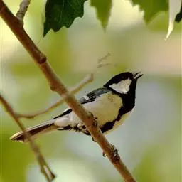 大山雀,英文名parus major,民间又叫“白脸山雀”、“吱吱嘿”、“吱啵”等。属鸟纲、雀形目、山雀科,体型与麻雀相似。头黑色,两侧具大形白斑;上体蓝灰,背沾绿色;腹面白色,中央贯以显著的黑色纵纹。鸣声的基调似“呼伯、呼伯”或“呼黑、呼黑”,易与其它鸟类区别。为林栖鸟类,通常栖息在山区阔叶林或针叶林间,夏季可见于海拔3000米左右的高山,冬时降至平原地带的林间,在耕作区或庭园中亦能经常见到是一种极常见到。
