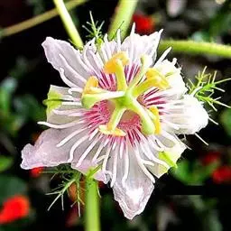 红花西番莲 是西番莲科、西番莲属多年生草质藤本,茎圆形,具卷须,长6-8米。叶互生,长圆形至长卵形,…