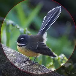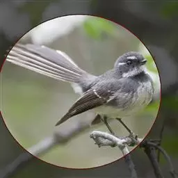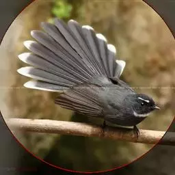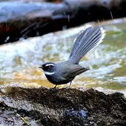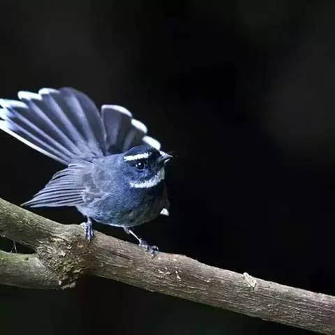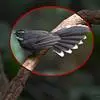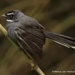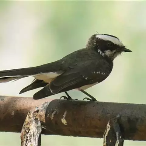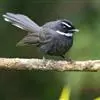 白眉扇尾鹟:体长17厘米,是一种中等体型的灰色扇尾鹟。色彩独特。宽宽的眉纹及前额白色,尾有白色宽边…