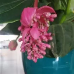 伞房花序,顶生,常仅有花1朵,有时3(-5)朵;苞片戟形,膜质,顶端渐尖,背面被短糙伏毛,以脊上为密,具缘毛;花梗长约5毫米,花萼管长1-2厘米,直径1-2厘米,有时毛外反,裂片5(-7),三角形至三角状披针形,长约1.2厘米,宽4毫米,较萼管略短,脊上被糙伏毛,裂片间具线形或线状披针形小裂片,通常较裂片略短,花瓣粉红色或紫红色,5(-7)枚,广倒卵形,上部略偏斜,顶端微凹,长3-5厘米,宽2-2.2厘米;雄蕊长者药隔基部伸延,末端2裂,花药长1.3厘米,花丝较伸长的药隔略短,短者药隔不伸延,花药长9毫米,基部具2小瘤;子房半下位,密被刚毛。果杯状球形,胎座肉质,为宿存萼所包;宿存萼密被红色长硬毛,长1.5-2.2厘米,直径1.5-2厘米。花果期几乎全年,通常在8-10月。