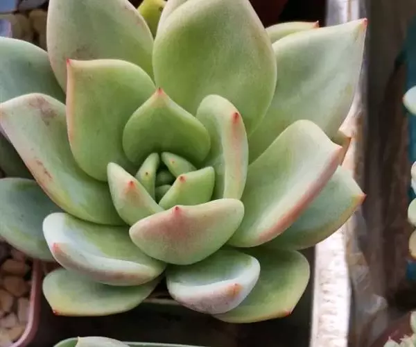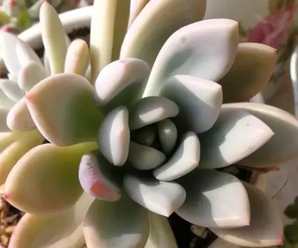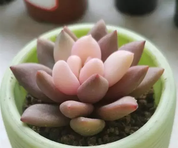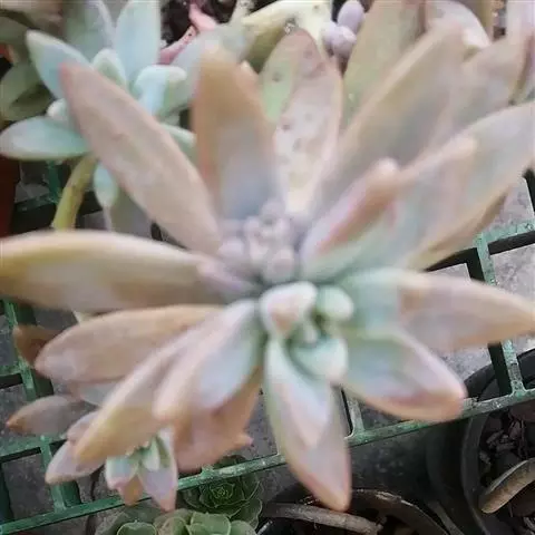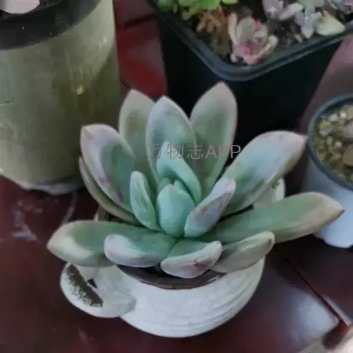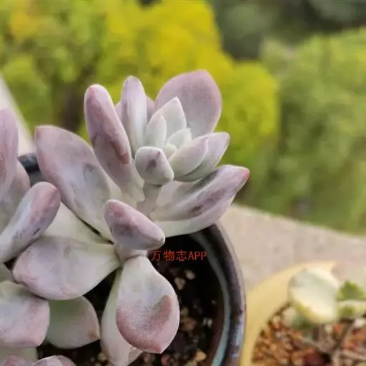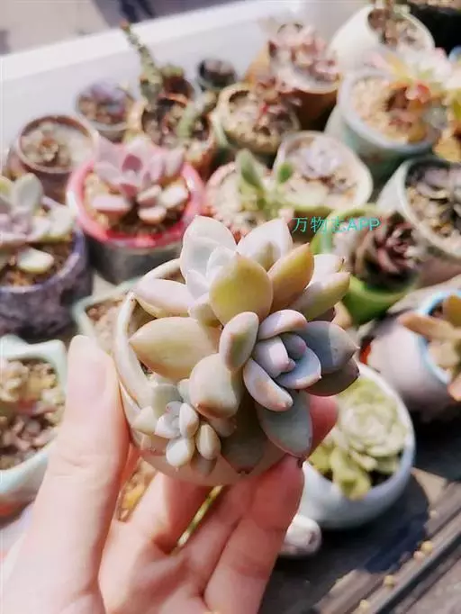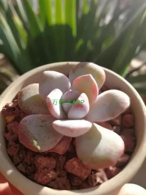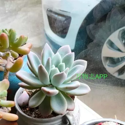 奥普琳娜 x Graptoveria ‘Opalina’ 为风车石莲属(Graptoveria )多肉植物,肉质叶互生,呈莲花状排列,整体颜色呈现粉粉的淡蓝色,叶缘和尖端容易泛红,非常漂亮,颇有古代美人的娇羞感。