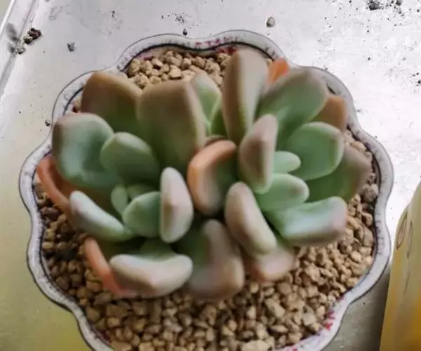 光照:夏季超过30℃应遮阴,其余时间可半日照或全日照,充足的光照,奥普琳娜的叶型会更包,白粉更厚,叶尖和叶缘就像抹了腮红,叶子的顶尖很容易就一点红,光照不足容易造成徒长,然后植株变得头重脚轻。