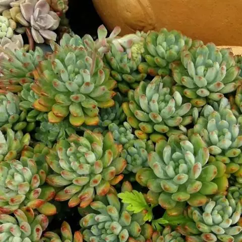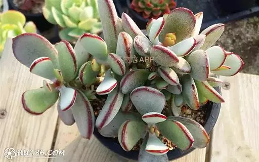 红缘莲花掌属蔷薇目、景天科植物,原产大西洋的加那利群岛。质厚,蓝绿色,被白霜,叶缘红褐色。聚伞花序,…