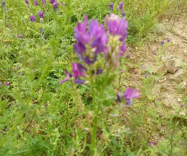 多年生草本,高50-100厘米。主根肥厚,木质,常分枝,灰白色。茎直立,上部多分枝,有细棱,被白色柔毛。羽状复叶有13-27片小叶,长5-10厘米;叶柄长0.5-1厘米;托叶离生,卵形,披针形或线状披针形,长4-10毫米,下面被白色柔毛或近无毛;小叶椭圆形或长圆状卵形,长7-30毫米,宽3-12毫米,先端钝圆或微凹,具小尖头或不明显,基部圆形,上面绿色,近无毛,下面被伏贴白色柔毛。