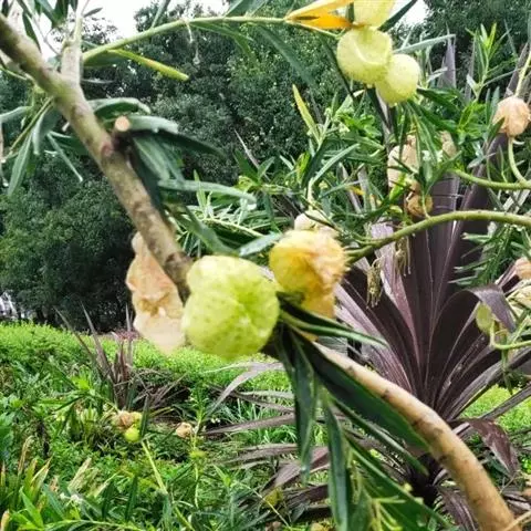 海杧果是夹竹桃科海杧果属的乔木。高4~8米;树皮为灰褐色;全株有丰富乳汁;叶厚纸质,…