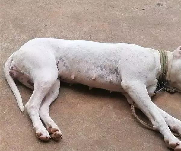 阿根廷杜高犬 根据观察研究和养犬实践证明:发育正常母犬的发情期共21天,母犬发情的第10天至第13天是最佳的配种日配种母犬最易受孕。所以一般在母犬发情的第10天进行首次交配,以后每天交配1次,连续交配4次,最后1次交配是母犬发情的第13天;或在母犬发情第10天首次交配,以后每隔1天交配1次,在最佳配种日交配2次。 就发情母犬外生殖器的变化来说,到了第10天的最佳配种日时,发情母犬肿胀的阴唇已明显消退,颜色呈暗红色,阴唇周围出现皱纹,养犬者用手指触动刺激发情母犬的阴唇时,犬的阴唇神经很敏感,会出现有节律的收缩,母犬还会本能地叉开后肢,出现接受交配状。 就发情母犬这时的生理状况来说,当母犬接受公犬交配、子宫受到精子刺激后,12~14小时开始排卵,排卵时间持续12~48小时。公犬射入母犬体内的精子,在母犬的子宫里存活48小时左右,这时遇到母犬的卵子则结合“坐胎”。在母犬发情的第10~13天的排卵期连续交配或隔日交配,都会获得最佳的受胎效果。