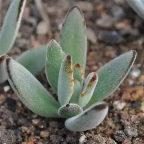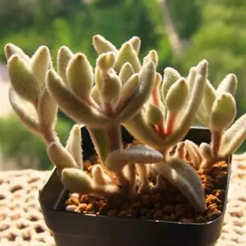 福兔耳是景天科伽蓝菜属的多肉植物,野外分布于非洲马达加斯加中部。植株叶片对生,长梭型,…