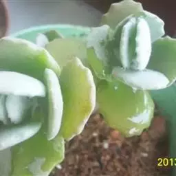 病、虫害及其防治:伽蓝菜属植物常见的虫害为根粉蚧、红蜘蛛和夜蛾类幼虫。根粉蚧主要为害幼苗根部,严重时导致植株萎缩死亡,可用 3%呋喃丹粉剂或 40%乐果乳油 2000 倍液进行防治;红蜘蛛喜吸食植株汁液,造成植株萎缩,可喷施螨类专杀药剂,如 20%三氯杀螨醇乳油 800~1000 倍液、15%哒螨灵 2000 倍液等;夜蛾幼虫则啃食植株生长点,造成植株破顶,对此可使用广谱性杀虫剂进行防治。植株在交易流通过程中很可能会感染病、虫害,故而在种植前,最好检查植株株体及根部是否带虫体或虫卵、或者有病害特征。如有发现,应及时清理,以防传染给其它植株。