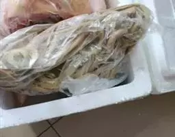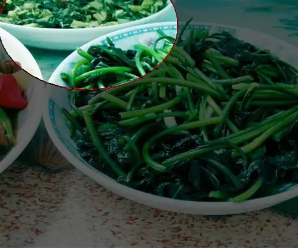 用手捏干水分放入碗中,蒜和干辣椒放在表面。