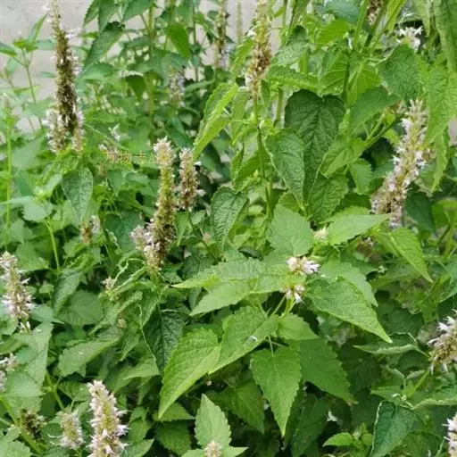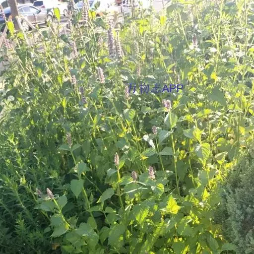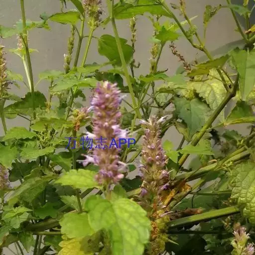 藿香,学名:Agastache rugosa (Fisch. et Mey.)O. Ktze.;又名:合香、苍告、山茴香等,是唇形目、唇形科、藿香属多年生草本植物,茎直立,高0.5~1.5m,四棱形,粗达7~8mm,叶心状卵形至长圆状披针形,花冠淡紫蓝色,长约8mm,成熟小坚果卵状长圆形,长约1.8mm,宽约1.1mm,花期6~9月,果期9~11月。