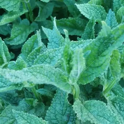 本品茎略呈方柱形,多分枝,枝条稍曲折,长30~1500px,直径0.2~17.5px;表面被柔毛:质脆,易折断,断面中部有髓;老茎类圆柱形,直径1~30px,被灰褐色栓皮。叶对生,皱缩成团,展平后叶片呈卵形或椭圆形,长4~225px,宽3~175px;两面均被灰白色绒毛;先端短尖或钝圆,基部楔形或钝圆,边缘具大小不规则的钝齿;叶柄细,长2~125px,被柔毛。气香特异,味微苦。