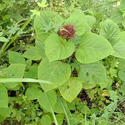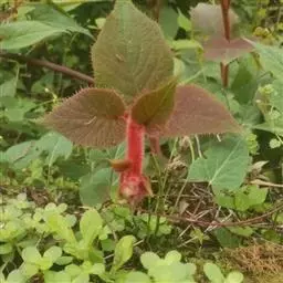 多年生草本。茎直立,高0.5~1.5m,四棱形,粗达7~8mm,上部被极短的细毛,下部无毛,在上部具能育的分枝。叶心状卵形至长圆状披针形,长4.5~11cm,宽3~6.5cm,向上渐小,先端尾状长渐尖,基部心形,稀截形,边缘具粗齿,纸质,上面橄榄绿色,近无毛,下面略淡,被微柔毛及点状腺体;叶柄长1.5~3.5cm。