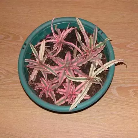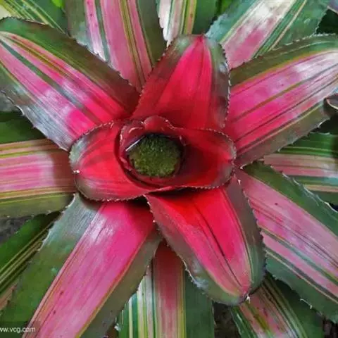 彩叶凤梨 L.B.Sm.) 凤梨科多年生常绿草本。株高25-30厘米,茎短。叶革质,带状,常基生,…