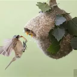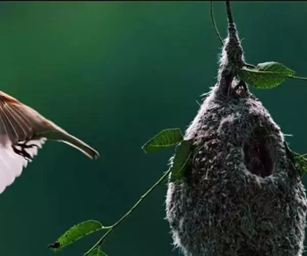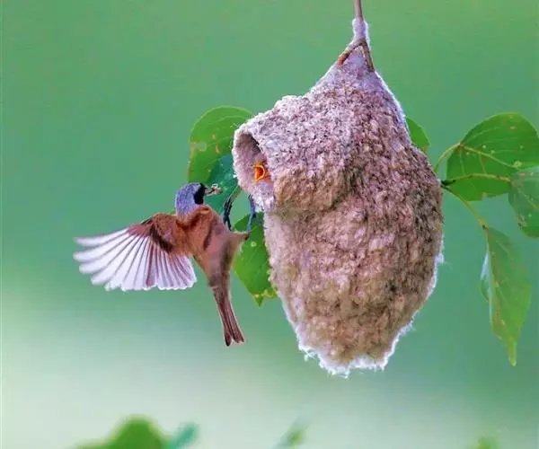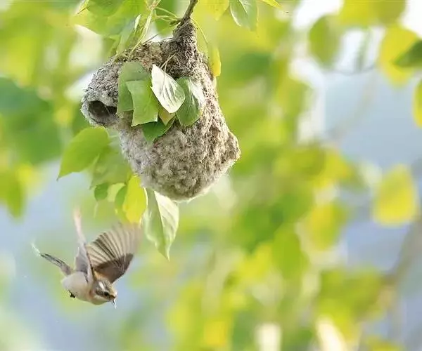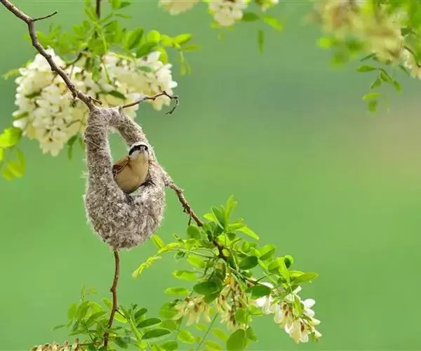攀 白冠攀雀 雀的窝外观像个“靴子”,一般高挂在树的枝头掩蔽在浓荫之中。攀雀在整个筑巢过程中不断地用脚爪摁住羊毛绒絮,用嘴将其拉伸延长成长形的纤维……攀雀将羊毛拉长的纤维反复缠绕在树枝上固定整个巢,也将羊毛拉长的纤维反复缠绕在巢壁的外面,包裹里面的柳絮、花序以及羊毛。攀雀搜集众多的柳絮、花序以及羊毛增加巢壁的厚度,不光是为了保暖,也是为了增加巢的重量,不然的话稍许的风就会把巢吹得上下翻飞,住在里面的雏鸟每天都会在里面不停地翻跟头,攀雀的巢也有点像我们被子的棉胎:外面密密的线网包裹着厚实的棉花。
