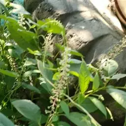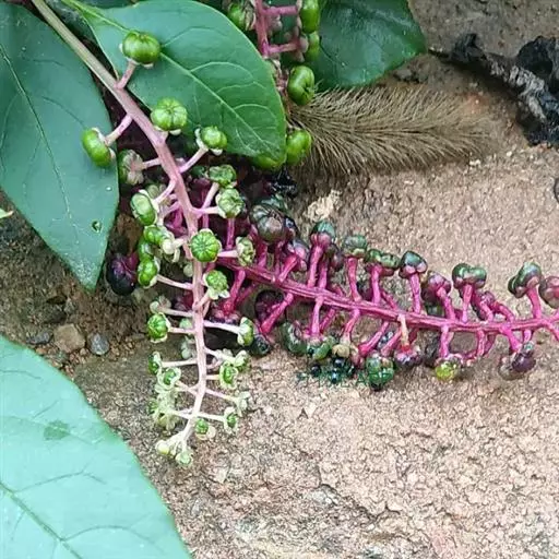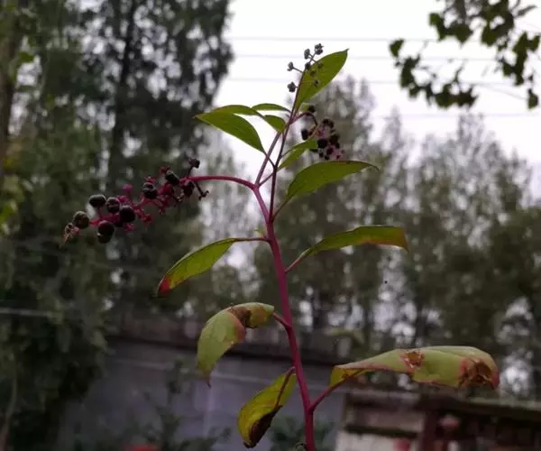 垂序商陆 多年生草本,高1-2米。根粗壮,肥大,倒圆锥形。茎直立,圆柱形,有时带紫红色。
