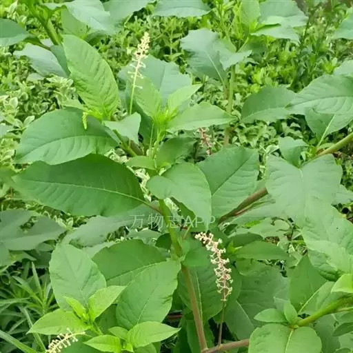 垂序商陆(学名:Phytolacca americana L.)是商陆科,商陆属植物多年生草本植物,高可达2米。根粗壮,肥大,茎直立,圆柱形,叶片椭圆状卵形或卵状披针形,顶端急尖,基部楔形;总状花序顶生或侧生,花白色,微带红晕,心皮合生。果序下垂;浆果扁球形,种子肾圆形,6-8月开花,8-10月结果。