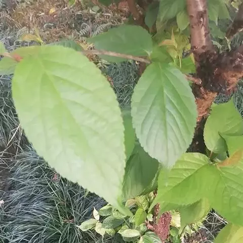 叶片椭圆状卵形或卵状披针形,长9-18厘米,宽5-10厘米,顶端急尖,基部楔形;叶柄长1-4厘米。
