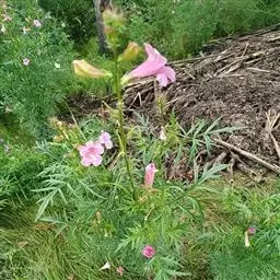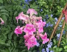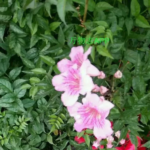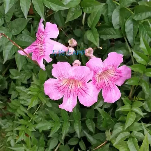 非洲凌霄(学名:Podranea ricasoliana (Tanfani) Sprague)是紫葳科非洲凌霄属植物。常绿半蔓性灌木,自然独立生长状态下,高1米左右,少数达到2米。叶对生,奇数羽状复叶,叶柄具凹沟。花期秋至翌茸春季,圆锥花序顶生,花冠漏斗状钟形,先端5裂,粉红到紫红色,喉部色深,有时带有紫红色脉纹。
