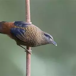 蓝翅噪鹛:噪鹛科、彩翼噪鹛属动物。中型鸟类,体长22-25厘米。上体棕橄榄褐色密被黑色鳞状斑,…