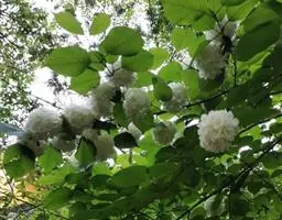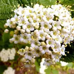 绣球荚蒾,五福花科荚蒾属落叶灌木,高可达3米,树冠球形;幼枝有垢屑状星状毛,老枝粗壮,具皮孔,…