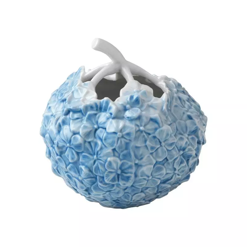 水培花瓶 是在素烧而成的坯上,通过拍图(用孔渗透色料打稿),手工构线,混水,经过1350度左右的高温烧成。