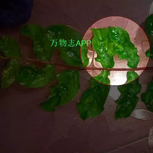 叶具小叶4-6片,托叶比小叶大,叶状,心形,下缘具细牙齿。小叶卵圆形,长2-5厘米,宽1-2.5厘米,全缘;托叶叶状,卵形,基部耳状包围叶柄。