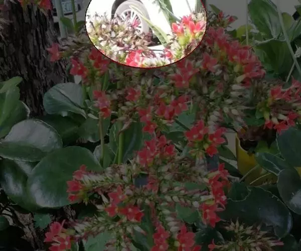 顶生紧密的伞形花序,有花7-14朵;总轴长1- 1.5厘米,密被绒毛;花梗长1-1.3厘米,密被锈色绒毛;花萼小,长1.8-3毫米,被锈色绒毛,裂片5,齿状三角形,长约1.2毫米;花冠管状钟形,长约4厘米,直径近4厘米,肉质,暗深红色,内面基部有5枚黑红色的密腺囊,裂片5,扁圆形,长1.5厘米,宽2厘米,有缺刻;雄蕊10,不等长,长2.2-3.2厘米,花丝无毛,基部深红色,花药长椭圆形,紫黑色,长1.5-2.5毫米;子房近于卵圆形,长7毫米,顶端截形,密被锈色羊毛状绒毛,花柱长2.3厘米,无毛,柱头小,点状。