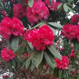 烈香杜鹃:常绿灌木,高可达2米,枝条粗壮而坚挺,叶芳香,革质,上面蓝绿色,无光泽,下面黄褐色或灰褐…