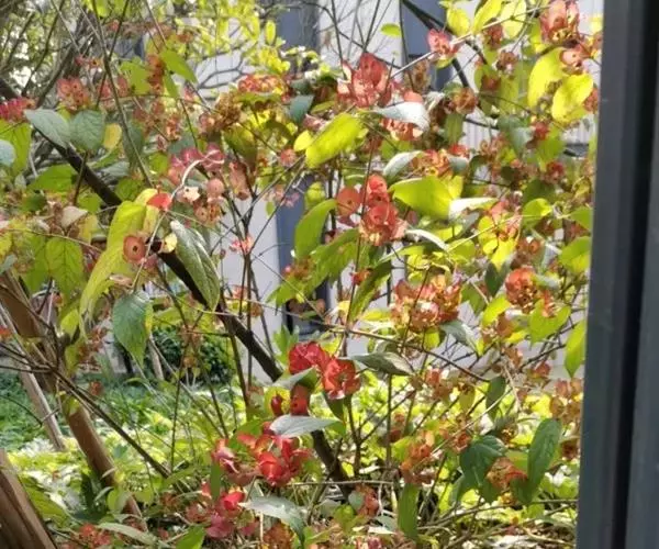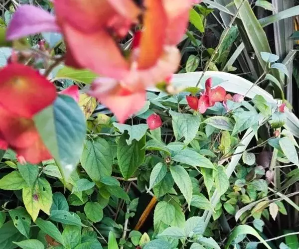 冬红( Holmskioldia sanguinea Retz. )为马鞭草科( Verbenaceae )冬红属( Holmskioldia )植物,又名阳伞花、帽子花,从冬红这个名字的表面字义来看,说明它的花在冬季依然能开放出绚丽的红色。冬红花顶生,花萼伞形,花冠喇叭形,橙红色,盛开时极为鲜艳夺目。它的枝条伸长具蔓性,可修剪成灌木。冬季忌潮湿,干旱有利开花,花后进行强剪,促使其萌发新枝。性喜高温,生长适温 23—3 2 ℃ , 适用于花架、花廊或盆栽。冬红在热带地区,用于园林绿化,诱引于花架或墙壁上。亚热带、温带地区可作温室盆栽。