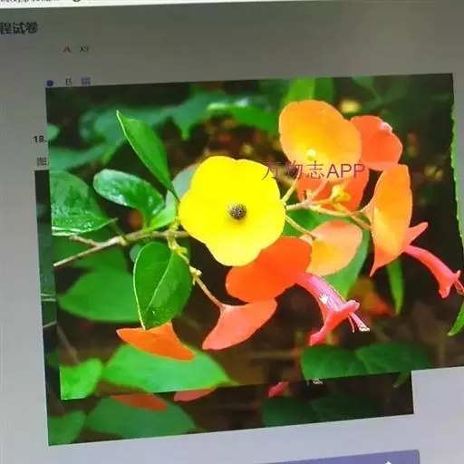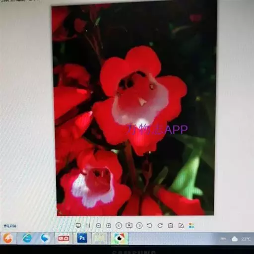 聚伞花序常2-6个再组成圆锥状,每聚伞花序有3花,中间的一朵花柄较两侧为长,花柄及花序梗具短腺毛及长单毛;花萼朱红色或橙红色,由基部向上扩张成一阔倒圆锥形的碟,直径可达2厘米,边缘有稀疏睫毛,网状脉明显;花冠殊红色,花冠管长2-2.5厘米,有腺点;雄蕊4,花丝长2.5-3厘米,具腺点。