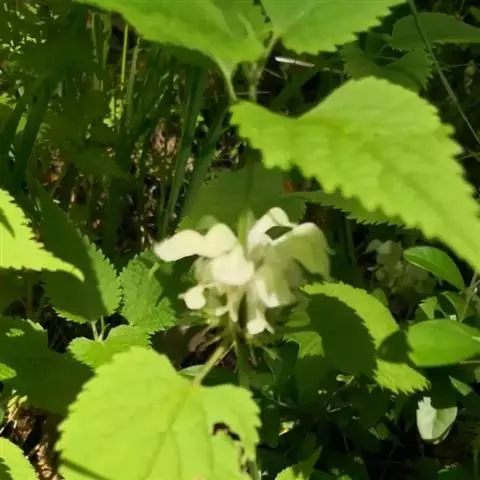 叶对生,膜质,卵形或宽卵形,基部圆形或近平截,叶缘有锯齿,两面均有稀疏毛及腺点,但沿叶脉具毛较密;叶柄长1-2厘米,具毛及腺点,有沟槽。
