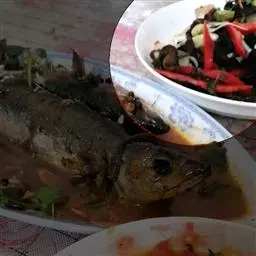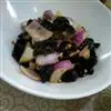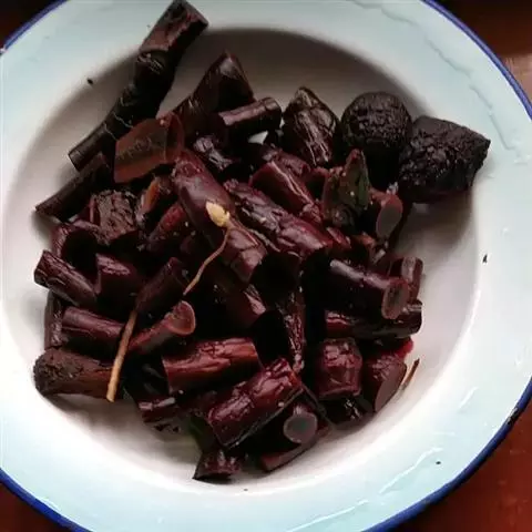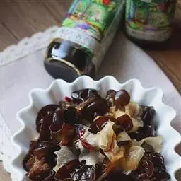 平底锅,热锅倒入油,在油中放入八角和辣椒,无油的地方放入蒜瓣和Dried Mixed Herbs,油开始冒泡后,在无油的地方放入切成细条状得西芹,然后加入黑胡椒后翻炒2分钟,放滚刀切好的大葱,加入甜鸡酱后,再放入木耳,稍微翻炒后,盖上盖子3分钟左右,加入黑胡椒,少量盐,加入热水,大火沸煮,水差不多收干后,再加入盐,加少量沸水,收汁时再加一次甜鸡酱和黑胡椒,关火盖盖,焖3分钟后装盘.