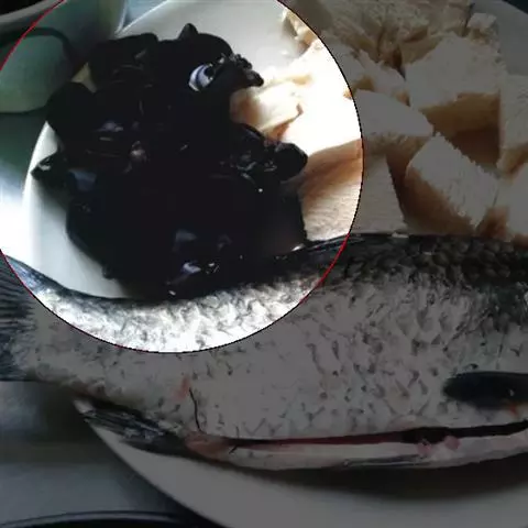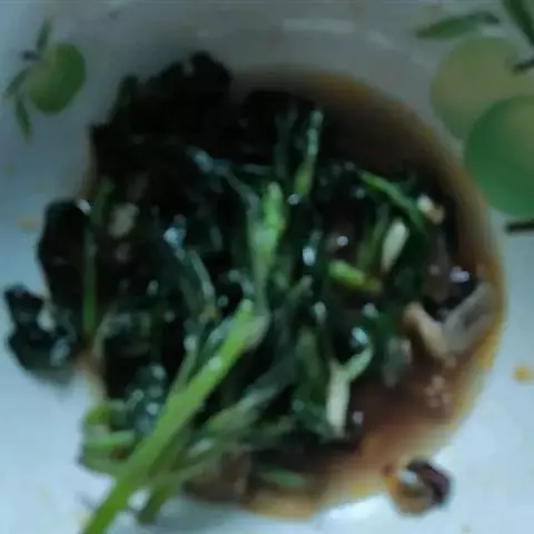 西芹,木耳 ,大葱一根, 蒜, 青辣椒,盐,黑胡椒适量, 八角, 甜鸡酱10ml ,油3ml.